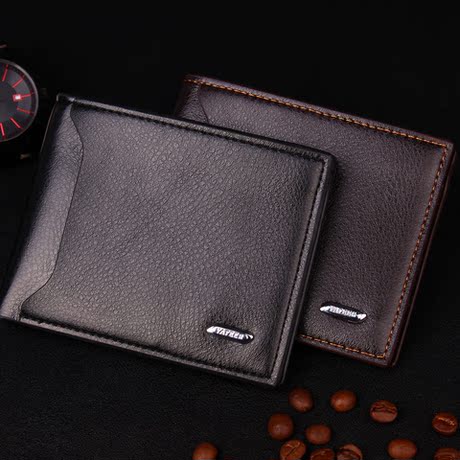 ¥14.00廠家*** 男士時尚短款***包 超薄牛皮錢夾 磨砂男士***錢包