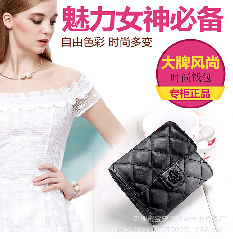 頭層羊皮短款女式錢包 菱格***零錢包 雙11熱銷經典款 廠家***