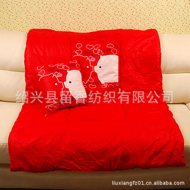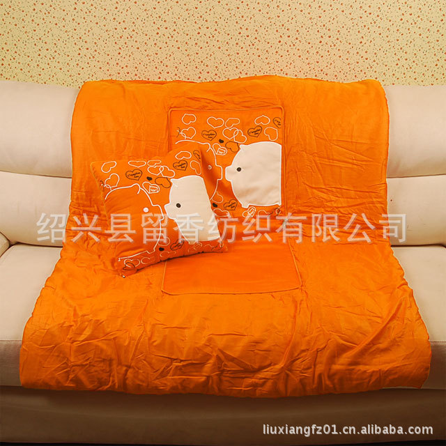 工廠***生產訂做100%全棉印花多功能靠墊被子 休閑被子