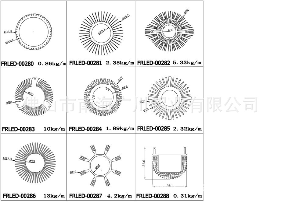 主營產品:各種型號的鋁型材圓管、方管,家具鋁型材,建筑門窗鋁型材,廣告燈箱鋁型材,箱包鋁型材,LED太陽花散熱器,LED T型散熱器,LED燈鋁型材外殼,安防監控設備鋁型材,流水線鋁型材,醫用設備鋁型材等。產品品種豐富,廣泛的用于建筑門窗行業、家具行業、LED節能燈具行業、安防設備行業以及電子電器等多個領域。
