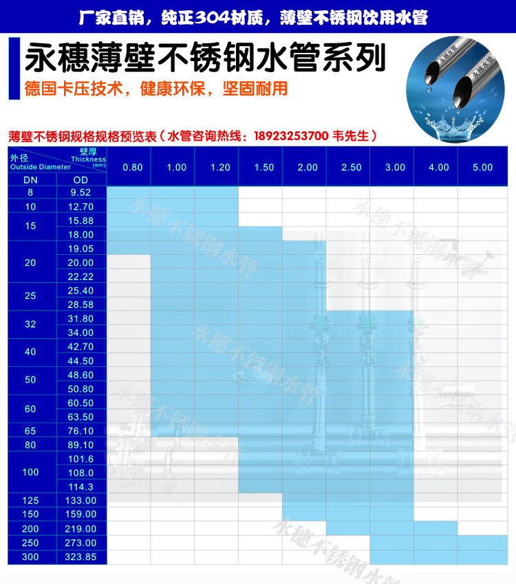 佛山市永穗不銹鋼有限公司薄壁不銹鋼水管規格表(美標ASTM A312.ASTM A358)
