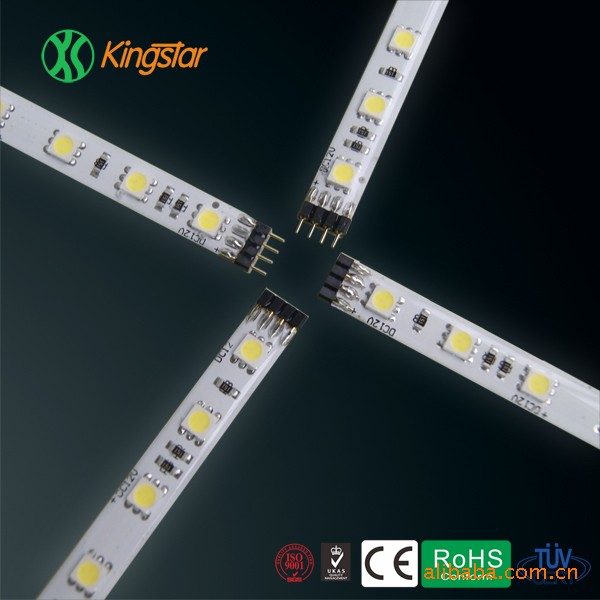 Led光條led5050/3528軟光條采用非常柔軟的PCB板為基板,高亮度貼片LED為發光體,發光角度>120度,發光體均勻的分布在條型PCB板正面,外形非常纖薄小巧。每三顆LED組成一個回路,使用時可以沿著PCB上面的切線任意截斷,背面帶進口3M膠,用于粘貼??呻S意彎曲,也可隨意固定在凹凸不平的表面上。