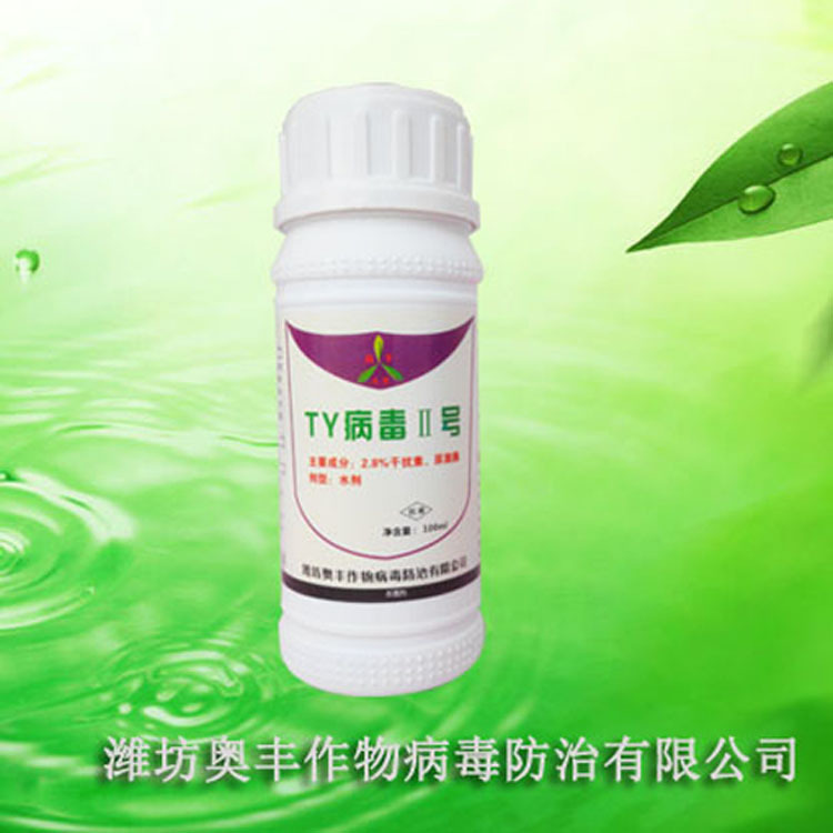 在病害常發期使用《TY病毒II號》30-50ml兌水15kg進行全株均勻噴霧。