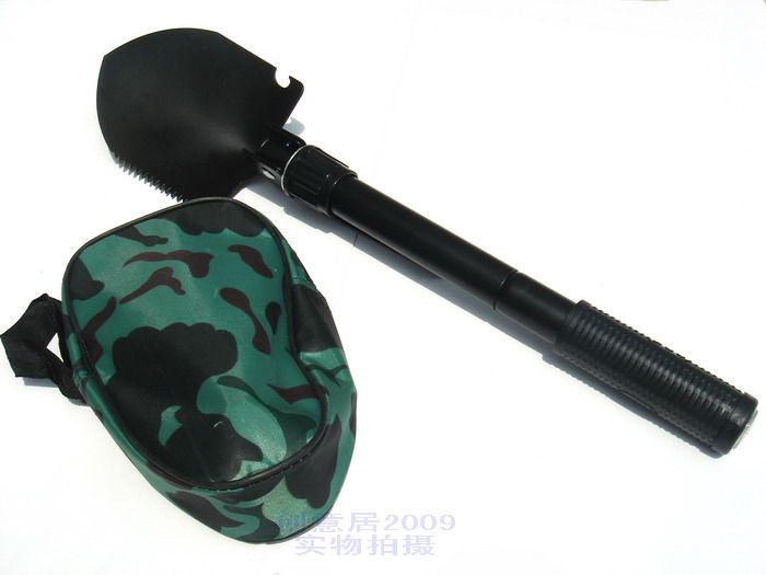 功能:折過來是鍬,反折過來是鎬,不管你是刨坑還是挖土,鍬上還有鋸齒和開瓶器,把手尾部還有指南針,盡情享受軍鍬給你帶來的便利吧! 非常順手的工具,又不占地方,(相當于相機包大?。┲亓績H500克,在家里你可以用它來栽花種草!出外旅游你可以用來刨坑搭帳篷!是居家旅游的***!