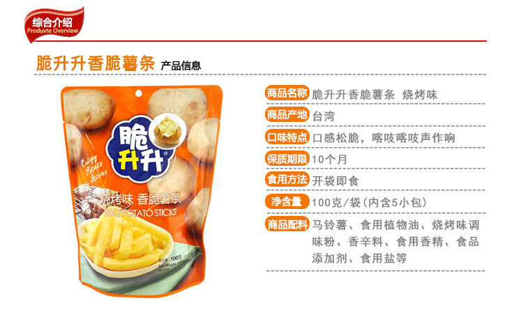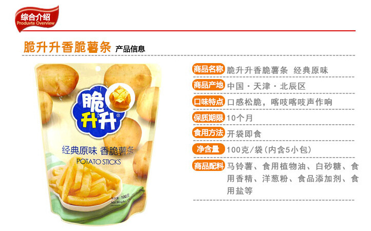 脆升升香脆薯條100g/包廠家***休閑食品零食批發秋季淘寶