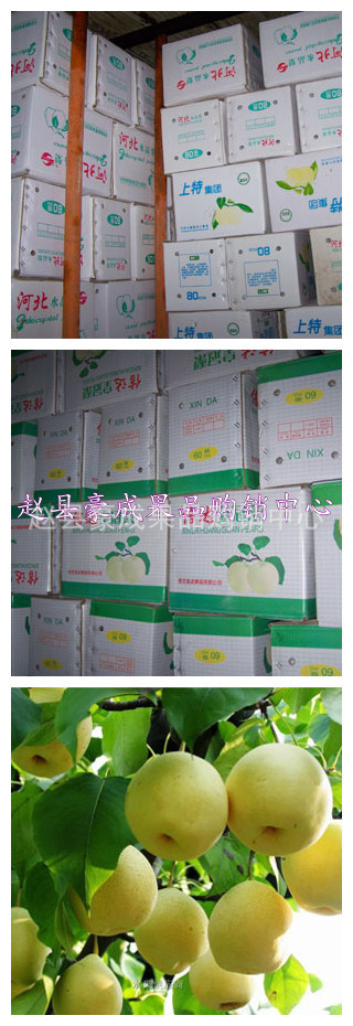 坐落在位于有“中國趙州橋”“柏林禪寺”名勝古跡的中國古趙州——趙縣范莊鎮曹莊,是一個果樹開發、生產地、銷售、批發于一體的綜合性服務企業,本中心交通方便,服務周到,擁有一大批經驗豐富的果農技術隊伍和完善的管理體系;目前擁有雪花梨、皇冠梨、鴨梨水晶梨等各種水果的批發和零售,產品銷往東北、(哈爾濱吉林遼寧)還有山東、山西云南、貴州、河南、四川的銷售趁勢同本行業的***,量大、價格合理,服務周到,深受客戶的好評和業內人士的稱贊。我們堅持以“***的質量”“***的產品”“***的服務”“***的信譽”為企業宗旨。友好團結、求實創新的企業精神,本中心熱誠歡迎新老客戶和有識之士與本中心 攜手共進,共創輝煌!