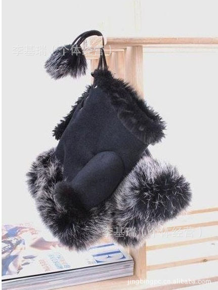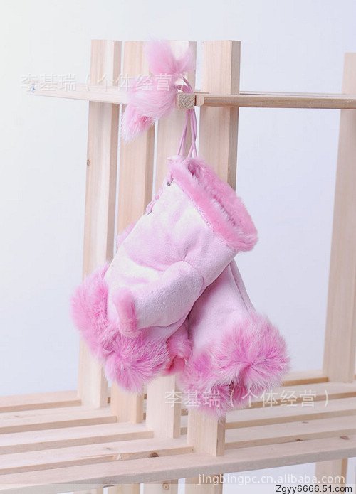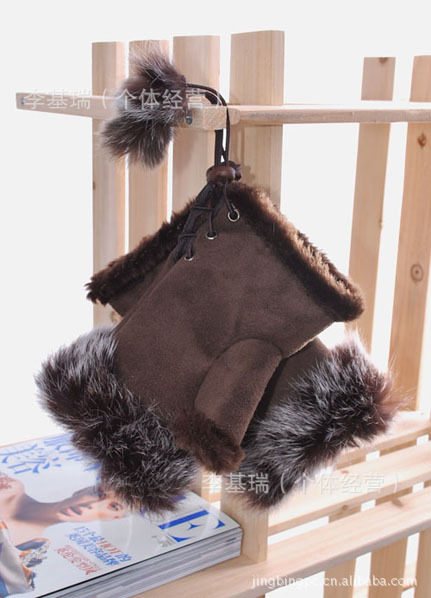 麂皮絨鑲兔毛的,里布是很保暖的絨絨,戴著它的小手手既暖和又很靈活方便,
