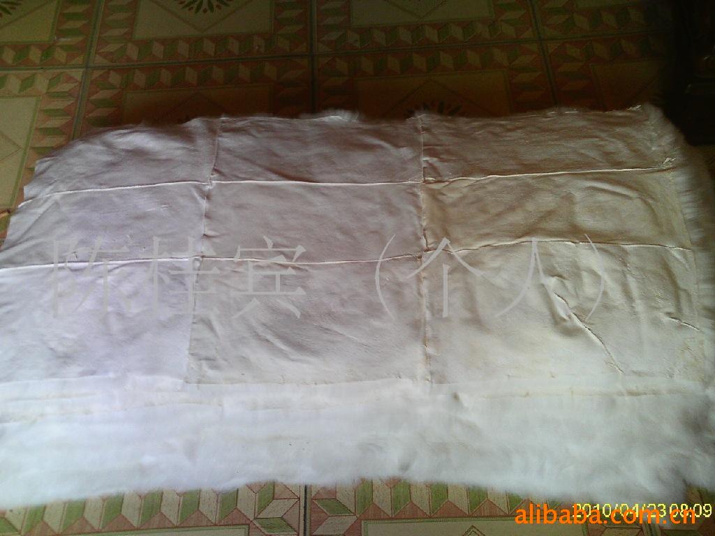 這是用進口兔皮做成的褥子、尺寸是110cm*52cm、顏色有青色、白色、草色、還可以染色、還可以染成客戶需要的各種顏色