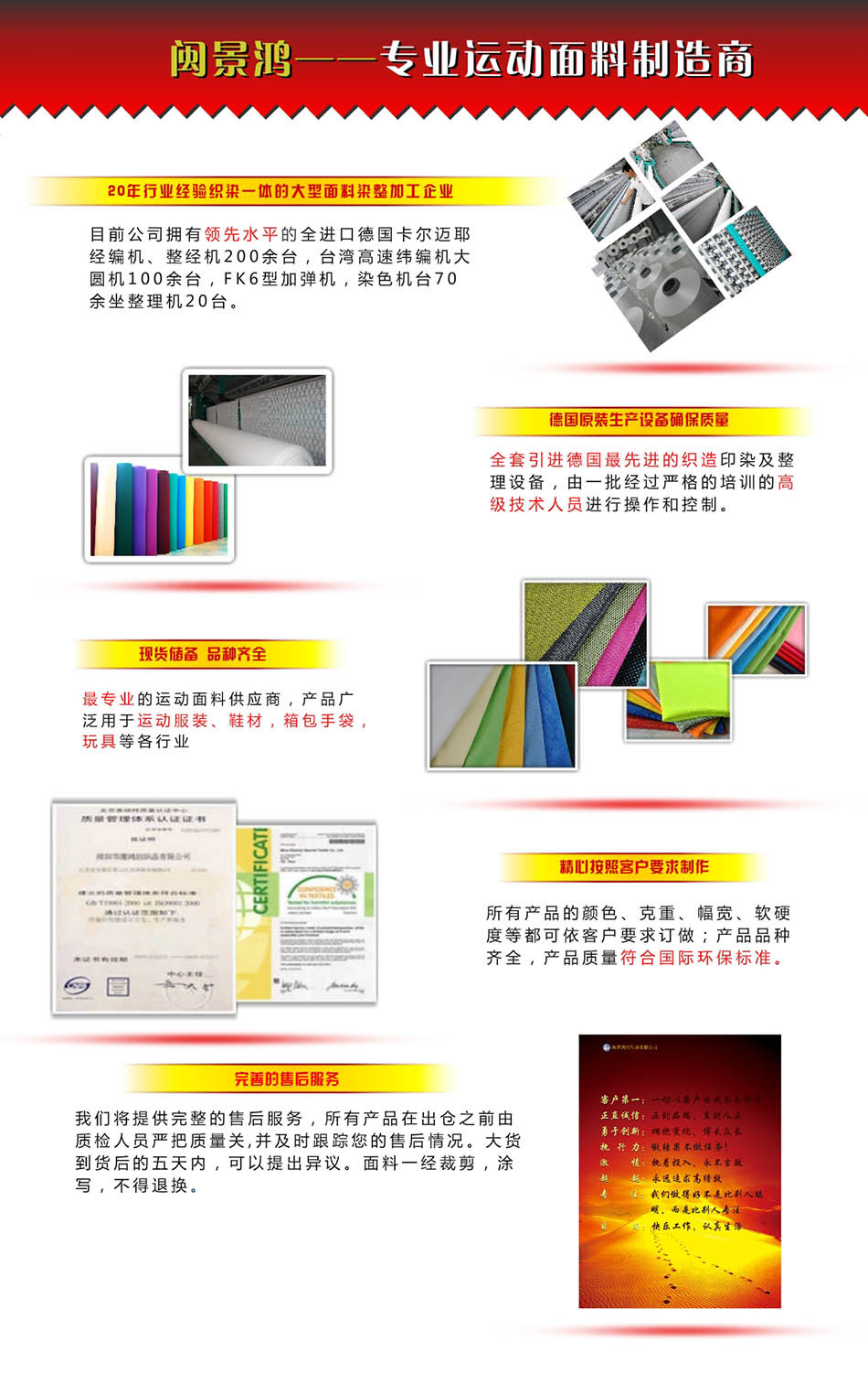所有產品的顏色、克重、幅寬、軟硬度等都可依客戶要求訂做;產品品種齊全,產品質量符合***環保標準。