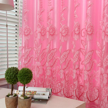 廠家***定制 燙金提花爛花 粉色爛花紗窗簾面料 臥室窗