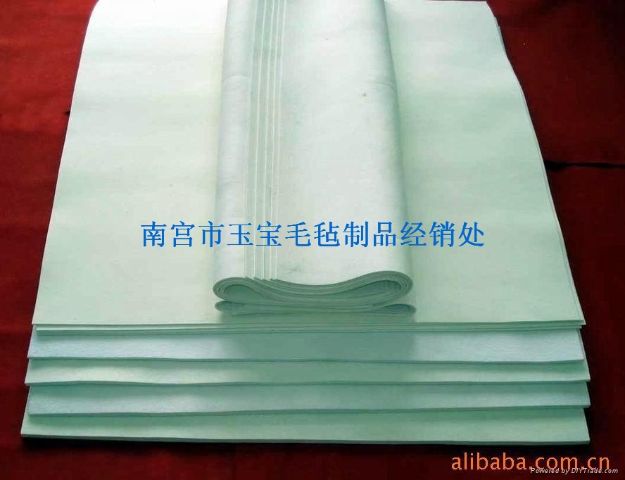 9 書畫毛氈 氈面平整均勻,潔白柔軟,富有彈性,可襯托宣紙,使書畫愛好者運筆自如,手感舒適.在作品墨多時,不會跑墨,有托墨的作用,又因羊毛可吸烘水分,又具有吸墨的作用,大大體現了脫水保墨的良好性能,特別是繪制國畫,能夠妙筆生花,書畫氈經濟實惠,等級齊全,方便耐用,是文房四寶必需的輔助材料。
