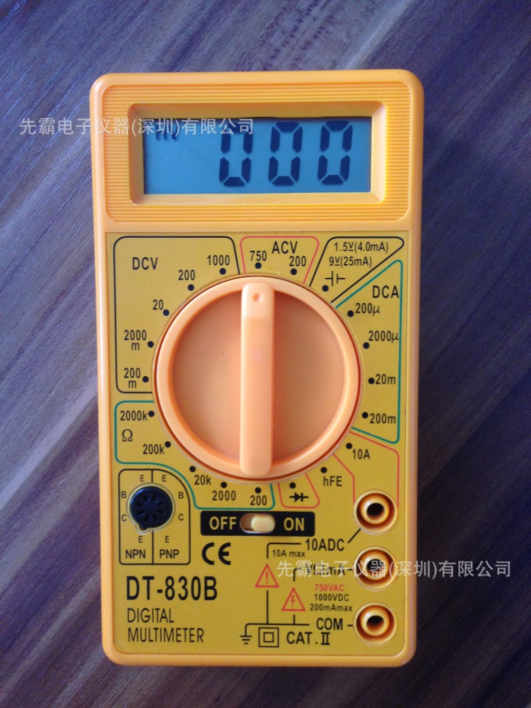 本產品是目前數字萬用表中一種性價比的產品,能夠測試DCV/ACV/DCA/電阻/電池電流/三極管/三極管等。產品求符合CE/UL等標準。為了程度地體現客戶利益,在同行中價格。顏色可由客戶自定,并能準時交貨。