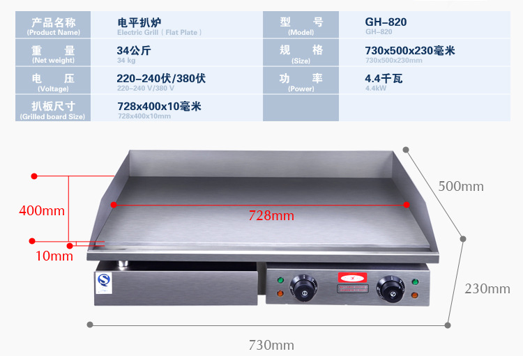廠家***新粵海GH-820商用電熱平扒爐 手抓餅機器 鐵板燒創