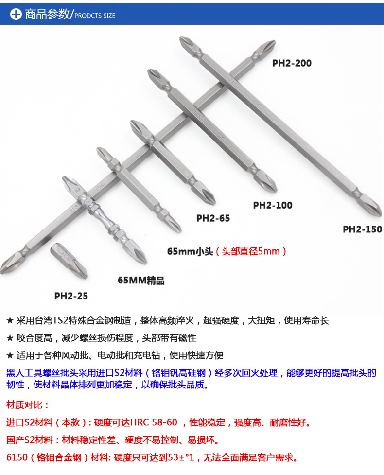 ***凱樂S2材質 十字形起子批頭套裝電動氣動螺絲刀批頭風
