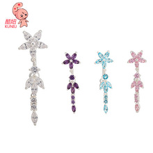 新款韓國小清新雙花朵閃亮鋯石肚臍環 速賣通wish***肚臍