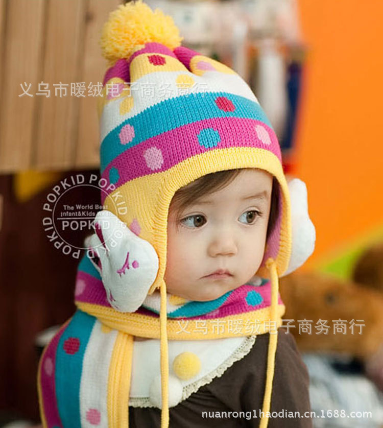 廠家*** 加厚無色差 兔子卡通護耳帽子 圍巾套裝 批發