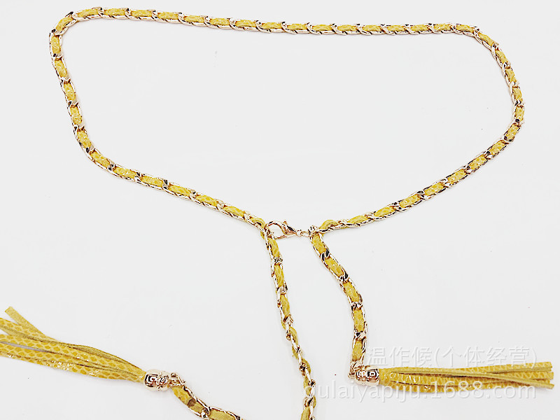 扣頭:合金鏈條搭勾(仿金色) 帶身是牛皮條穿鏈