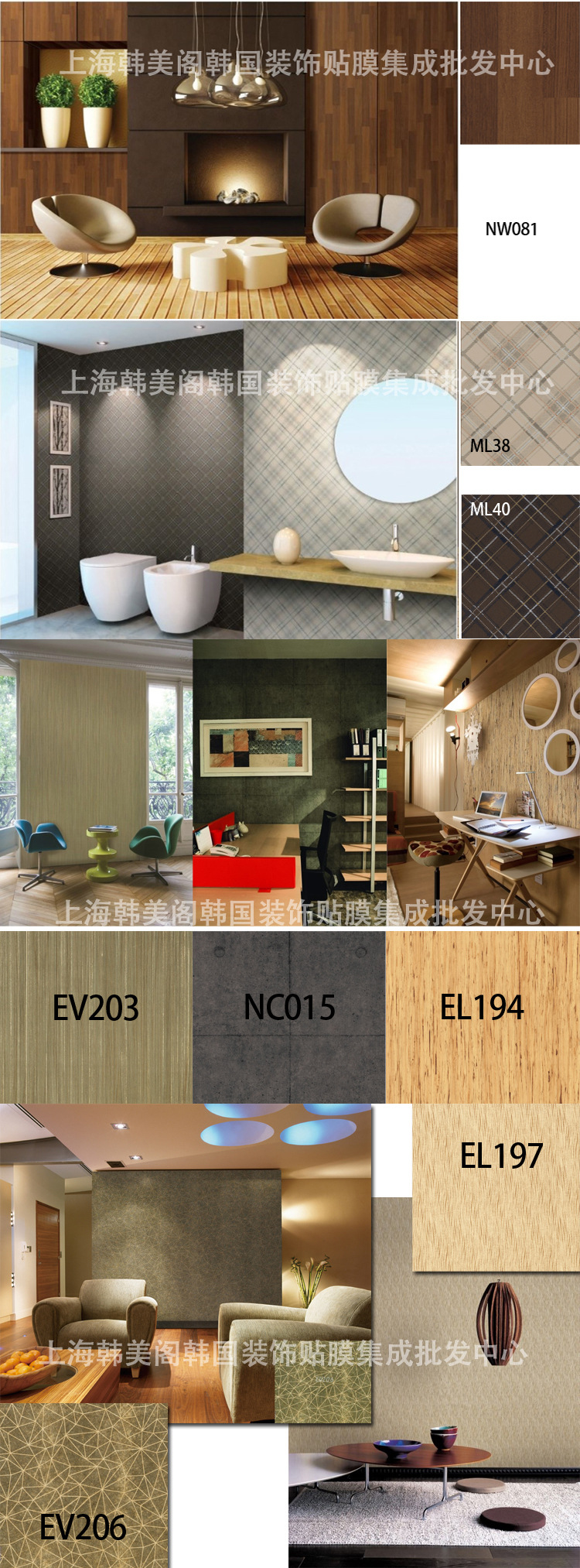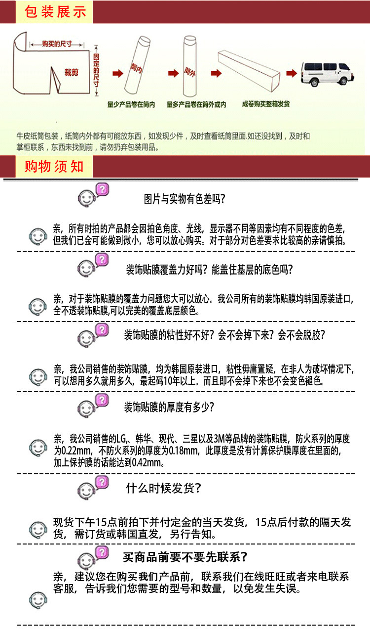 產品說明:裝飾貼膜是進入中國市場的高科技新型裝飾材料。不含有任何有害于人體的成分。利用壓延機設備及第二次加工設備而生產的新型環保產品,利用尖端的印刷技術及特殊的制作工藝,在特殊加工的膠片上開發出多種款式的紋理和表面具有凹凸和立體感的很多種類,與原來的收尾材料相比,擁有款式更多的特點,包括自然質感的木紋系列,高品質感的金屬系列,立體感很強的皮系列,還有顯大氣的大理石系列,是按照消費者要求的氣氛和用途,可以選擇適當款式的裝飾施工收尾材料。而且, 經特殊剪貼處理,在平面及至曲面上的施工變得簡易,與其它收尾材料相比,既經濟又易于施工。他對于碰撞, 摩擦,涂料等的耐久顯著以及防潮, 耐熱,易除污垢等效果顯著,主要用于高級場所的收尾處理,如禮堂、飯店、賣場、百貨商場、賓館、辦公室、機場、公寓、別墅、電梯口、劇院、可貼于鞋柜、書柜、衣柜、書桌、板材、玻璃等等一切表面平滑的基材上 用于衣柜書柜等家具翻新,可瞬間將家具煥然一新。pvc裝飾貼膜在國內獲得了消防防火認證,因此不需要做其他防火處理,希望廣大顧客前來光顧。