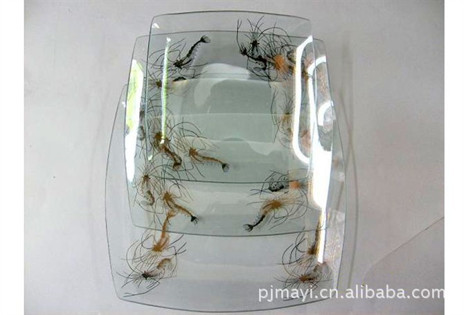 我廠生產的鋼化玻璃盤外表精美、高檔、用途豐富、花色品種繁多?;ㄉ透邷?50度,急冷急熱180度,適合在烤箱里面用,急冷急熱沒問題,一般的玻璃產品是無法解決的;透明度高、無模具痕跡、易清潔、耐沖擊,強度是普通玻璃的5-6倍,可以1.2米的高度,掉到水泥地上不會有破損、蹦邊、缺口等現象,高溫釉料,色澤艷麗。微波爐中使用,加熱不燙手,吸收微波極少,省電節耗。是微波爐、烤箱的理想產品。產品遠銷世界各地二百多個國家和地區,深受國外客戶的好評。我廠可以按照貴公司提供的數據要求訂做。