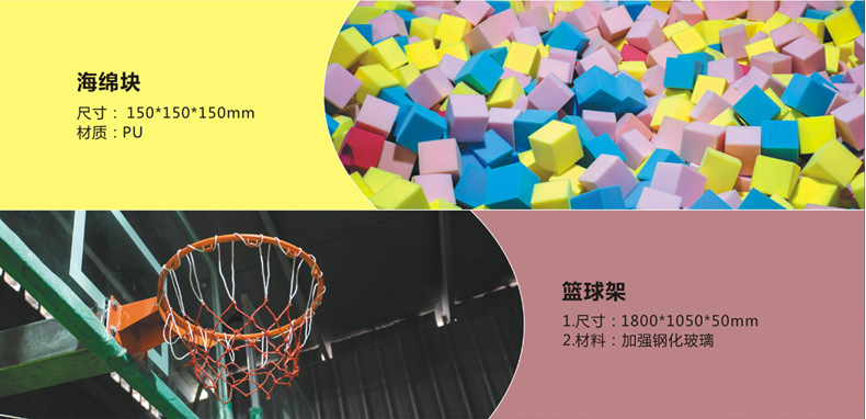 海綿塊、籃板、躲避球、攀巖、蜘蛛墻、專業蹦面、忍者空間