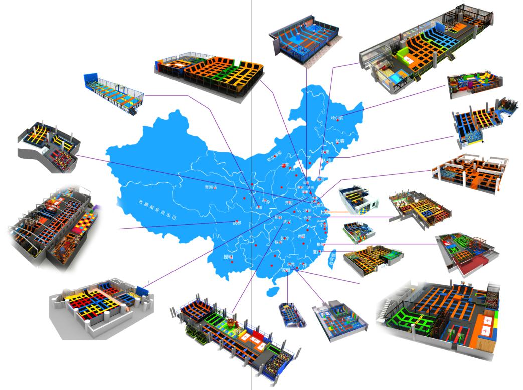 運營項目主要用于成年人娛樂、兒童親子互動、體操課程教學、瑜伽、健身、游戲對抗、跑酷運動、空中灌籃、極限翻轉等時尚活動,主要面向朋友聚會、員工娛樂減壓、親子娛樂互動、時尚party約會、兒童樂園、校園活動、極限挑戰等各類人群。亦可廣泛應用于購物商場、大型超市、星級酒店、健身體育場館、住宅小區、市政公園、游樂場、幼兒園、休閑文化中心等大眾娛樂場所。運動范圍包括:躲避球游戲、籃球彈跳扣籃、海綿池翻轉、室內攀巖、忍者空間、蜘蛛墻、游戲對抗、過關拓展、自由彈跳等幾十項娛樂編排。