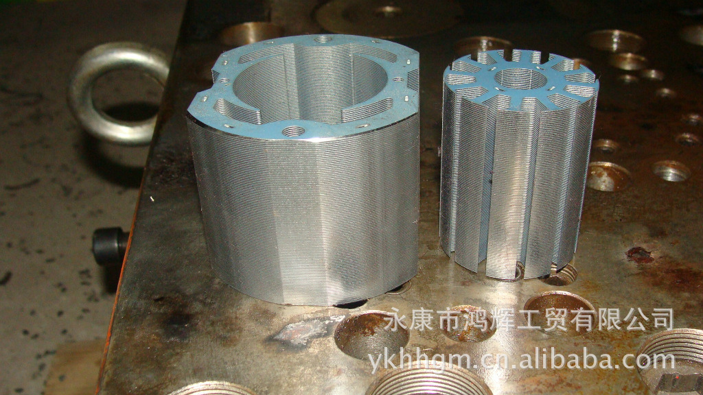 本公司備有設計室及一整套流水生產設備,專業生產各種電機定轉子沖片,技術生產能力雄厚.可根據客戶需要來圖來樣進行定制生產.生產的產品品種繁多,規格齊全,價格合理、交貨及時、質量穩定.