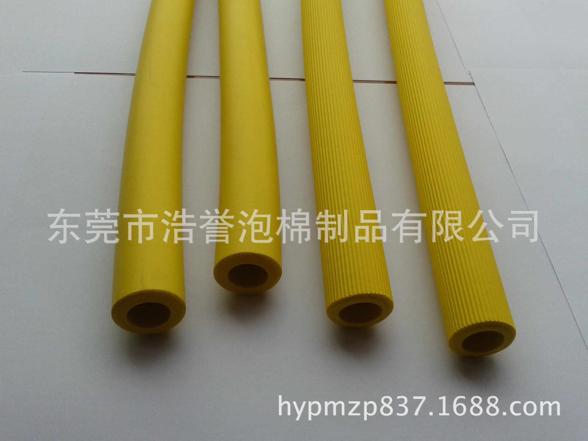 材料特點:1、樣象海綿,極富彈性,手感輕柔不傷手;2微孔材料,閉孔結構,吸水率低;3、光面管表面富塑膠光澤,磨面管表層則為天然磨砂面,倍顯高檔,止滑性好;4、阻燃性耐候性好,無毒性。泡孔粗細/硬度顏色/大小在發泡時可以調節??杉庸す饷?磨砂面,直角/圓角及各種形狀