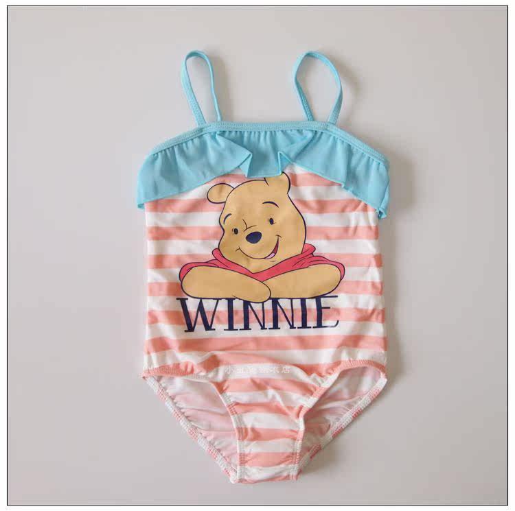 外貿原單2013迪士尼兒童游泳衣女童連體寶寶泳衣維尼熊 正品