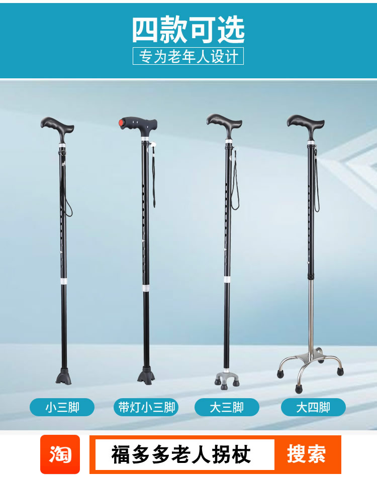 福多多老人拐杖圖片與價格表三腳拐杖防滑鋁合金四腳手杖堅固超輕老人拐棍