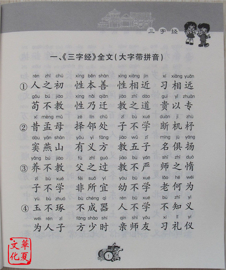 約1100字,1900年,聯合國教科文組織將《三字經》選入《兒童道德叢書》,向全世界發行和推薦?!度纸洝肥且徊扛叨葷饪s的中國文化簡史。學了《三字經》,就等于把中國文化史綱記在腦子里了,對孩子升學考試和文化修養都有極大幫助。