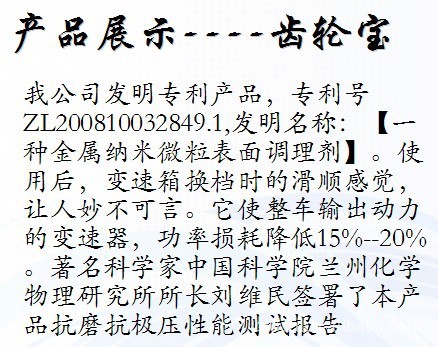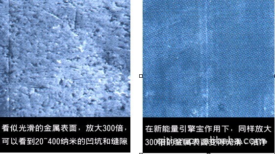 我的工作原理可以從我的名字知道——調理金屬,抵御摩擦——在熱和壓力作用下,納米粒子填補金屬表面微小凹坑,并強化金屬表面硬度。從而降低摩擦系數,減少80%磨損,達到保護設備之功效。(有圖為證)