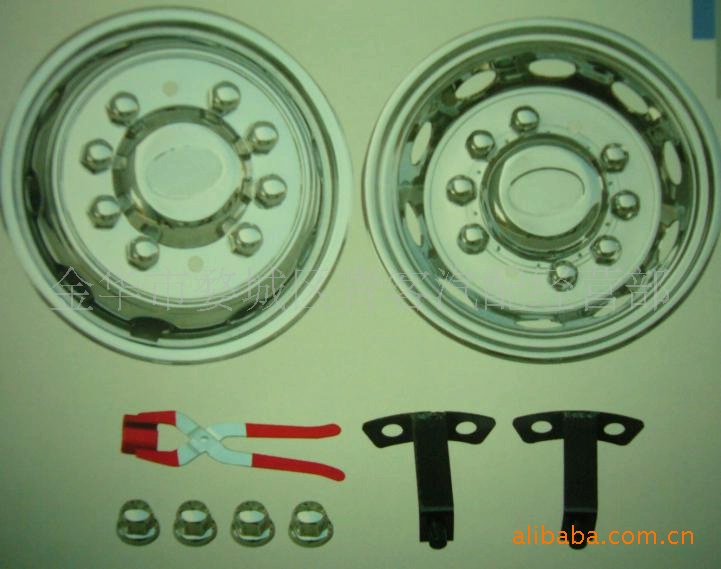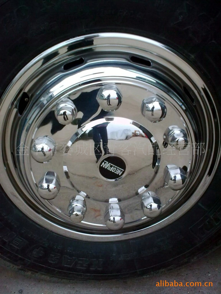 客車車燈;不銹鋼輪罩;不銹鋼軸套;不銹鋼螺帽罩;車標。