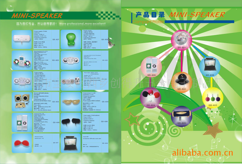 我司還生產IPOD音箱,PSP音箱,USB音箱等各種迷你小音箱.自2004年即進入迷你音箱行業. 目前有各種迷你音箱30多款.為諾基亞,摩托羅位,沃爾瑪供貨商.出口市場以歐美為主.