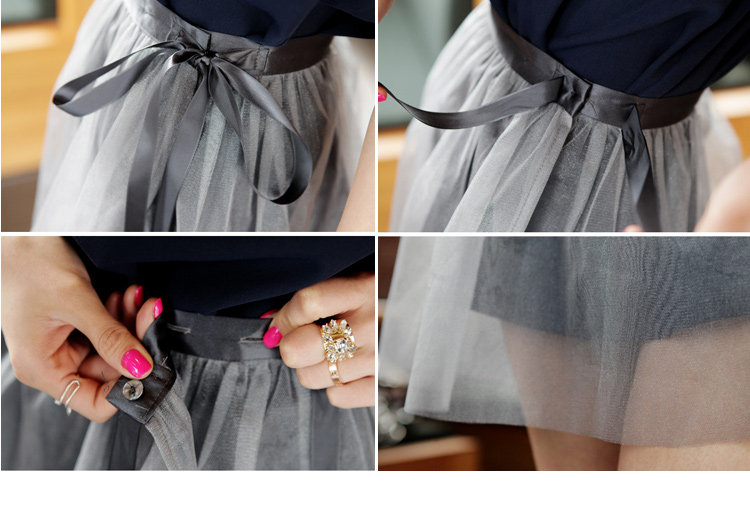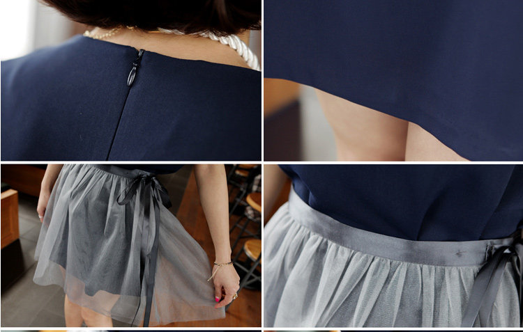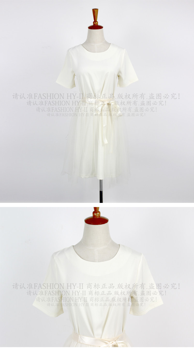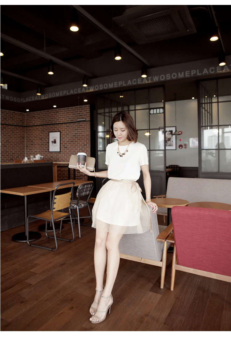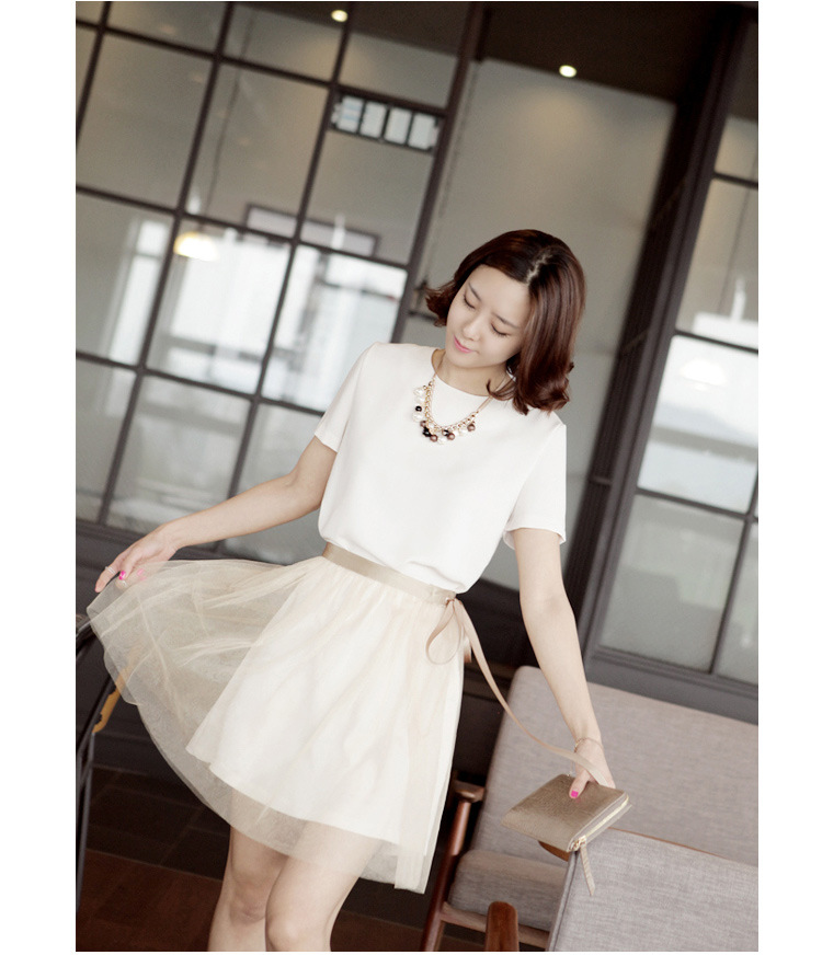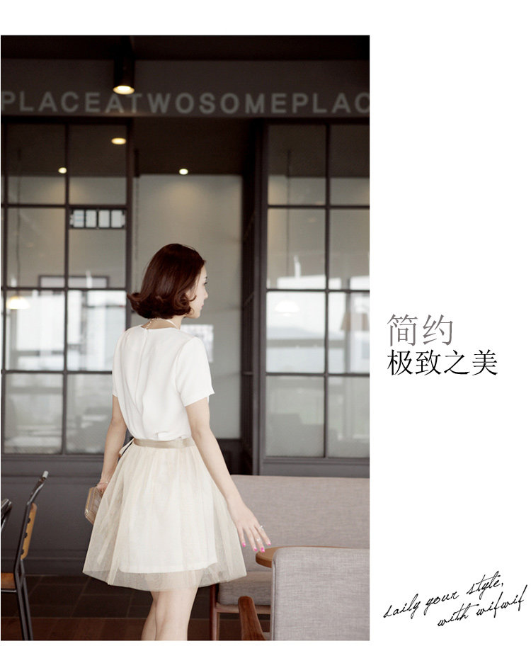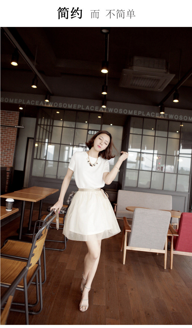 韓版夏新款女裝雪紡連衣裙短歐根紗套裝大碼兩件套裝