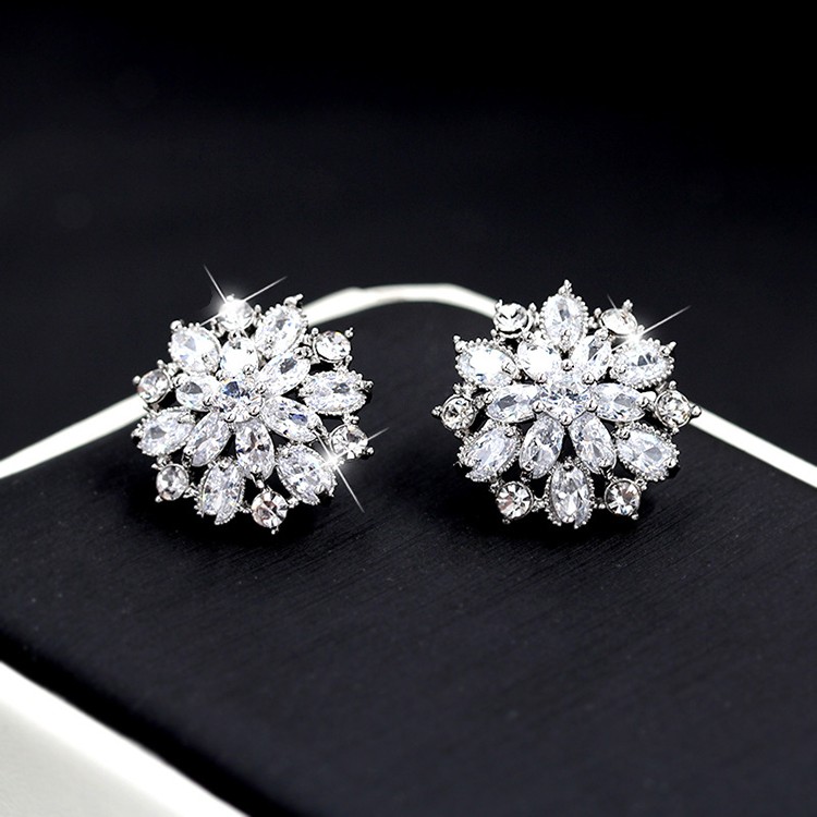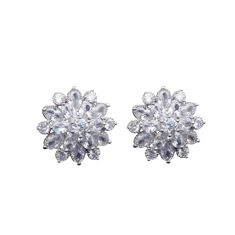 • 產品名稱鑲嵌AAA鋯石花卉耳環 飾品生產商工廠 飾品可定制
