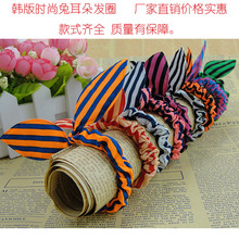 新款韓國風時尚條紋系列兔耳朵發圈布藝發飾小飾品店淘寶廠家批發
