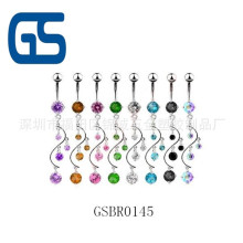 S形嵌鉆肚臍環 不銹鋼樹枝形狀肚臍環 廣東出口鈦鋼穿刺肚臍環