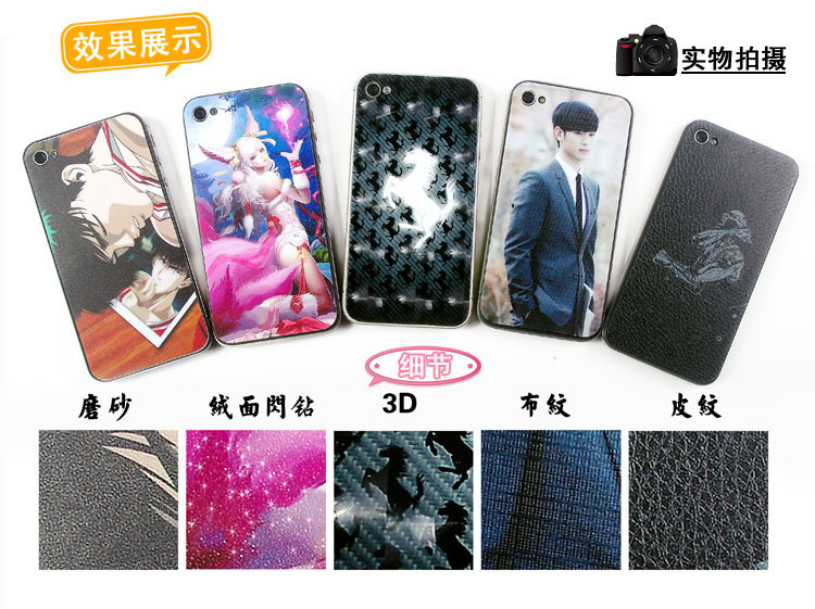 表面效果:表面為磨砂,布紋,皮紋,3D,絨面閃鉆 不滑手 不易刮 防水 前貼屏幕位置為鏤空 效果為配套壁紙效果