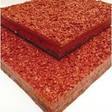 預制式橡膠跑道 :是一種預制型卷材跑道。以天然橡膠及人工橡膠為基礎,混合礦物質填充劑、穩定劑及色料于工廠內連續壓延處理,并以280-300℃的高溫加硫硬化一體成型,機械壓花,紋路一致的雙層結構合成橡膠。
