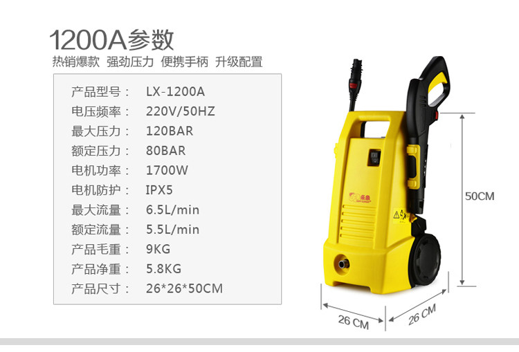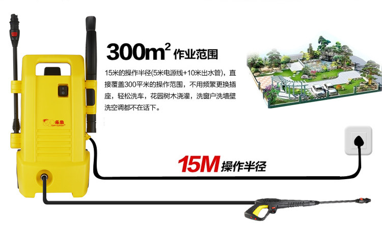 該款機器定位是家用高壓洗車機,1700W超大功率,水壓強勁,洗車超快;該款機器采用220V全銅電機加自吸組件,經久耐用;獨特關槍停機功能,節能環保;自吸兩用,快插連接,方便快捷;如果是家用清洗、洗車、洗地、洗墻、洗浴室、沖洗青苔等等可直接下單,絕不會讓您失望的。(注意:由于機器壓力比較大,請勿將槍口直接對人噴射)