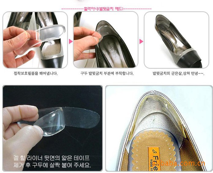 1.貼在后跟處:可防止鞋磨腳,有效彌補鞋子稍長的缺陷,改善鞋滑及鞋不跟腳