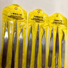 供應精品三支裝鑷子尖頭圓頭帶齒彎頭鑷子 1.0mm厚120mm長
