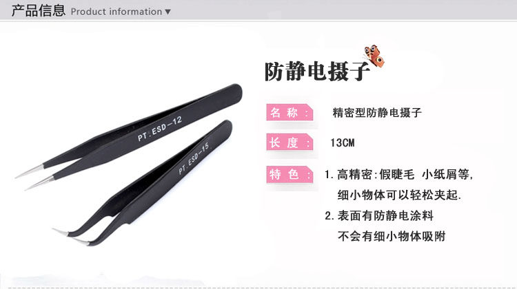 精密 進口防靜電不銹鋼尖彎頭鑷子 貼假指甲鑲鉆取鉆攝子