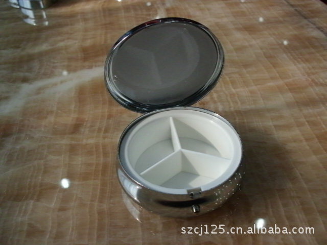 專業生產 高檔金屬心型醫藥盒 三格園型藥丸盒