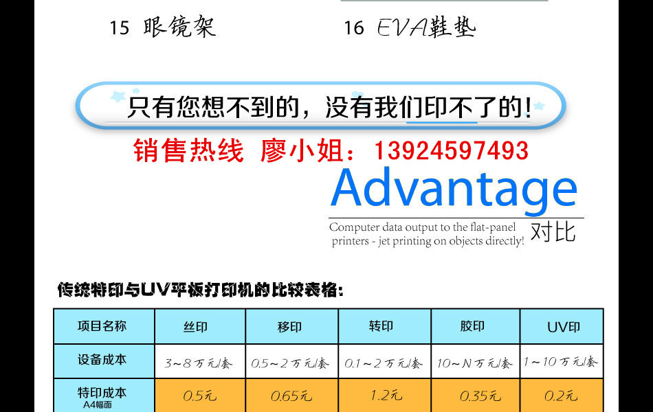 機器,機器的種類有三種,UV彩印機,平板打印機,卷裝機。如需咨詢可撥打: 廖小姐咨詢