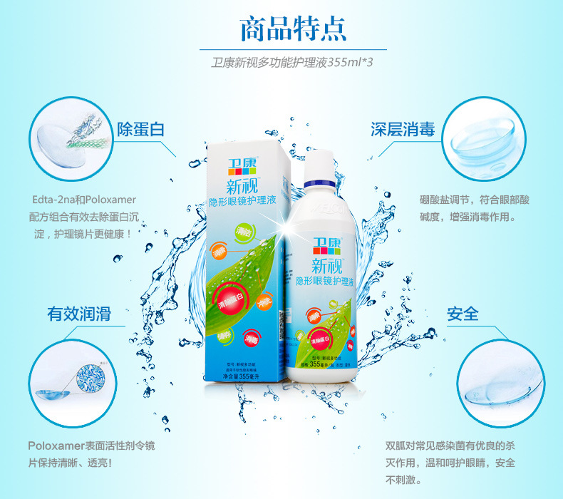 11、不能使用自來水、蒸餾水、礦泉水、不含防腐劑的生理鹽水來沖洗和護理鏡片。因為這些水劑沒有清潔和滅菌的功能,久用可使您的鏡片霉變或變形。