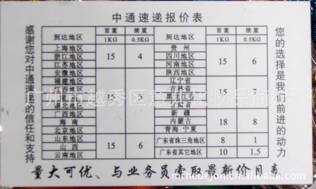 運費多少:發快遞每公斤約10元左右,而發貨運適合發大件的,約三四十元一箱貨(一立方左右大?。?,偏遠地區稍貴一些,具體可咨詢客服(運費由貨運公司收,我們僅提供預算和代為收運費,您可以選擇到貨才付運費,但可能會稍貴一些);快遞約三四天到貨,一般送貨上門,如發普通貨運站則時間長一點,快點的就3到4天,如要中轉的,就久一點的約五六天,到指定貨運站去取貨;發大物流(如佳吉,德邦,天地華宇等)這些物流收費貴一點。比普通物流。本店默認中通快遞:(店內所有產品不含運費)