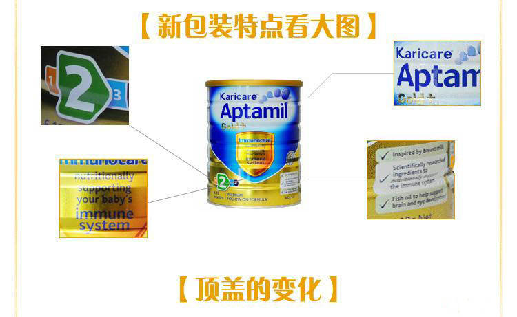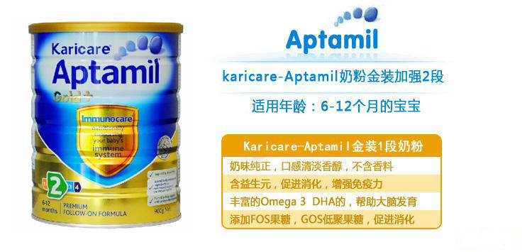 Karicare-Aptamil 在金裝奶粉的基礎上添加了FOS低聚糖,有效的增加了寶寶的抵抗力和腸胃消化能力,同時增加了腸胃益生菌,保護寶寶幼嫩的腸胃,并且軟化便便,很有效的改善寶寶的便秘問題。