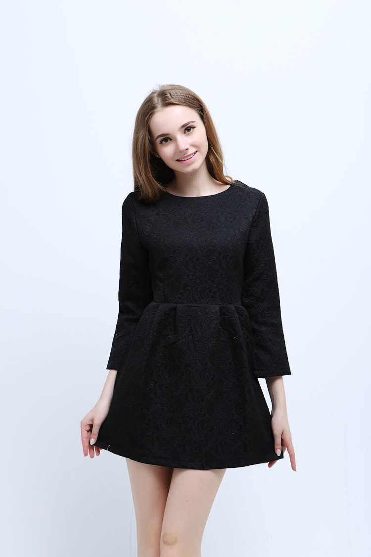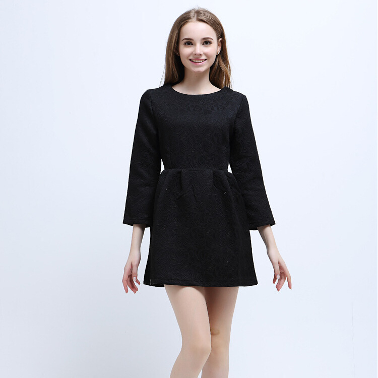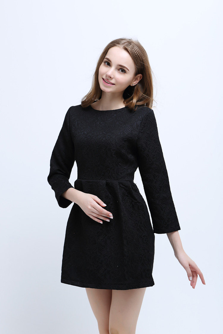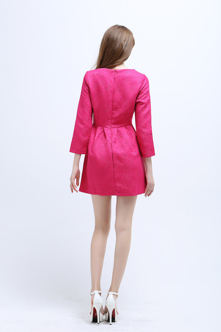 2015歐美新品精美印花九分袖連衣裙 職業OL大碼修身打底裙