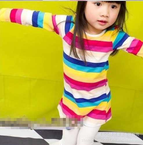 非??蓯鄣囊豢钐籽b,鮮艷亮麗的彩虹條紋連衣裙,加上一個大愛心天使的小坎肩,不讓人不注目哦,